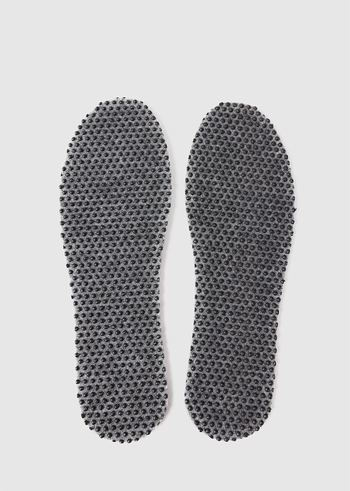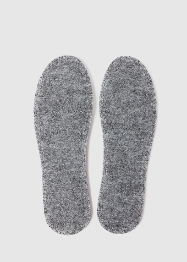 Стелька выполнена из натурального войлока, который эффективно защищает стопу от холода. Специальные резиновые канты с нижней стороны стельки дополнительно удерживают её на месте в обуви и предотвращают отклеивание из-за влаги. Мягкость войлока создает ощущение комфорта. Рекомендованыдля осе нней и зимней обуви, а также домашних тапочек